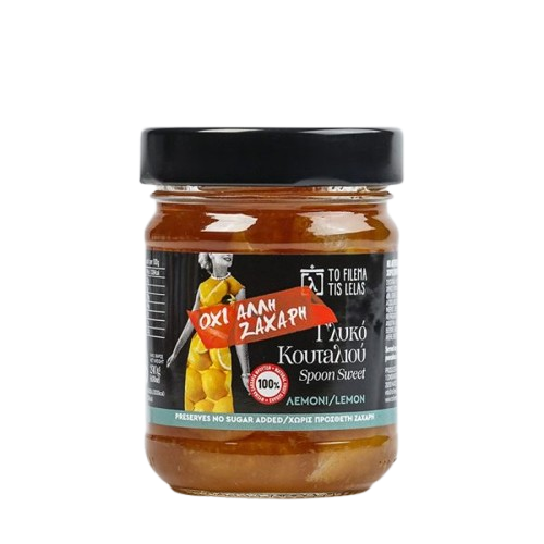 Γλυκό του κουταλιού χωρίς ζάχαρη από φρέσκα λεμόνια της περιοχής μας, κομμένα σε λωρίδες για ένα ξεχωριστό επιδόρπιο με λεπτό άρωμα.